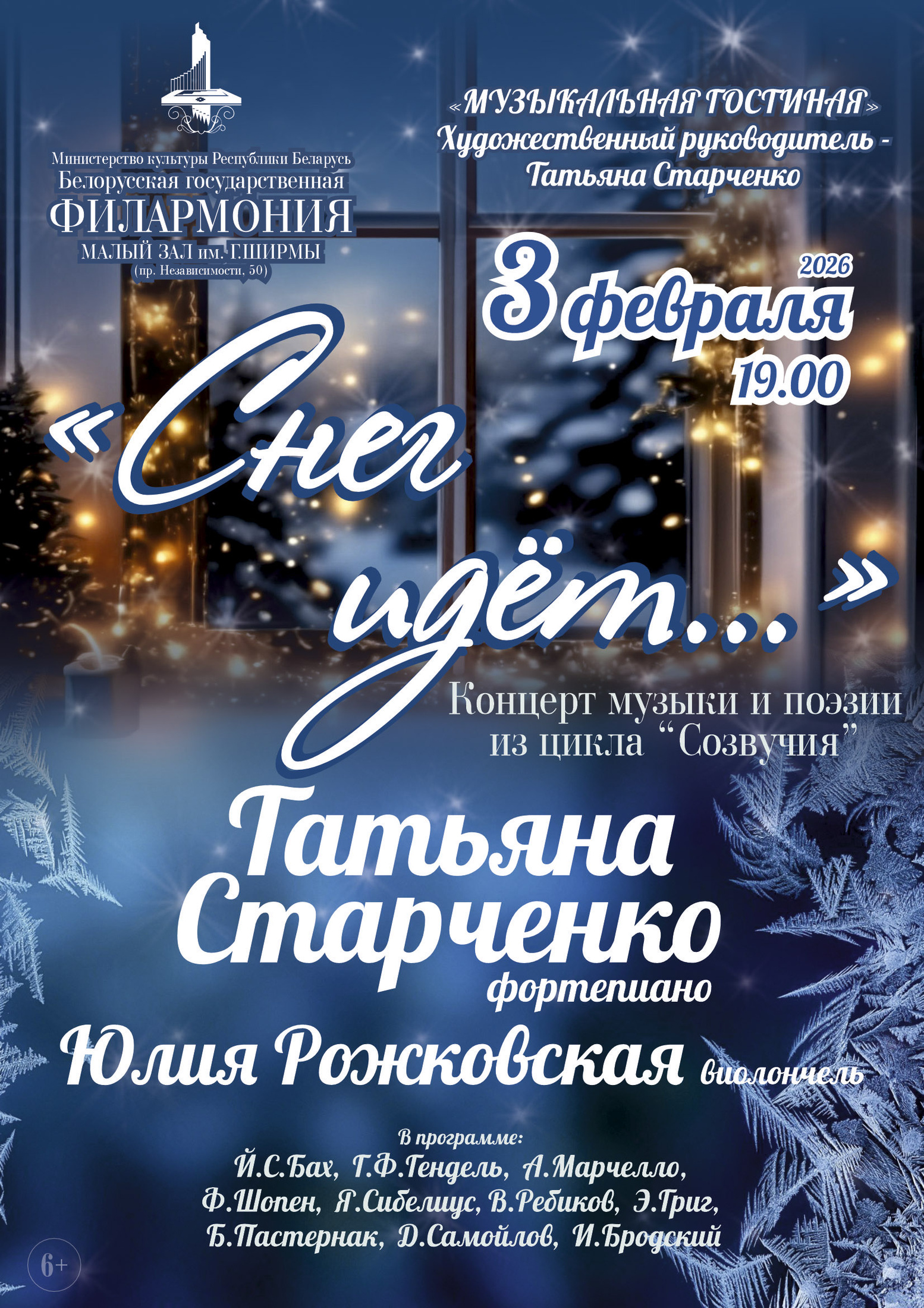 Программа «Снег идёт...» из цикла «Созвучия» – органичное сочетание музыки и поэзии, которые дополняют друг друга и находятся в удивительном взаимодействии.